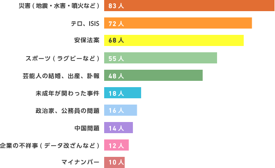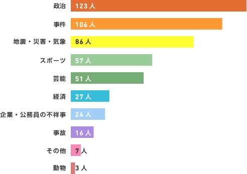 上位にあげられたニュースカテゴリーはグラフの通りです。特に大きなニュースがなかった人も、それも小さな幸せなのかもしれません。