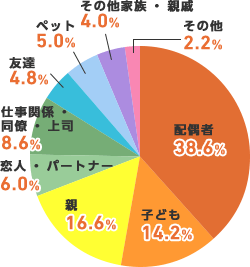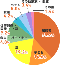 - 男性:「配偶者」「親」「仕事関係・同僚・上司」