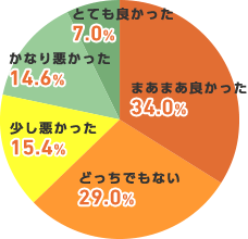 男性が「まあまあ良かった」「どっちでもない」「少し悪かった」だったのに対して、女性は3番目に「かなり悪かった」が多いことが分かりました。