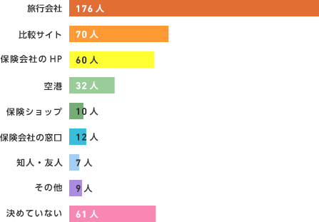 次回の海外旅行時に海外旅行保険をどこで加入するか聞いてみました。ダントツで多かったのが「旅行会社」