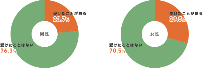 受けた場所は職場が男女とも一番多いのですが、男性で次に多いのが学校、女性は家庭と受けた場所が性別によって異なることが分かりました。