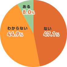 あると回答した人は64名(8.0%)と少なかったのですが、わからないと回答した人が359名(44.9%)にものぼります。