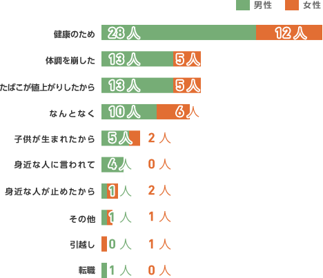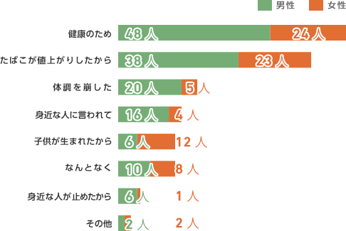 1位は「健康のため」48.3%、2位は「たばこが値上がりしたから」40.9%でした。