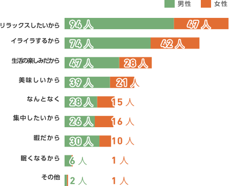 リラックスしたい、イライラするから・・・どちらとも現代のストレス社会と密接に関係していそうです。
