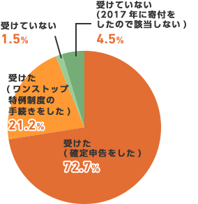 2016年以前にふるさと納税をした人のうち1名を除いて、確定申告やワンストップ特例制度などで、所得税・住民税から寄付金控除を適用させていました。