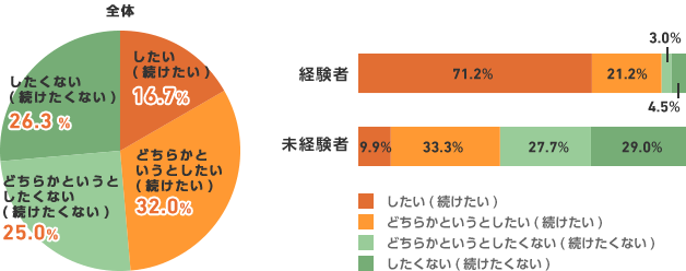 ふるさと納税を続けたいか、また今後したいと思うかを聞いてみたところ、ふるさと納税をしたことがある人とない人で、大きく回答が分かれました。