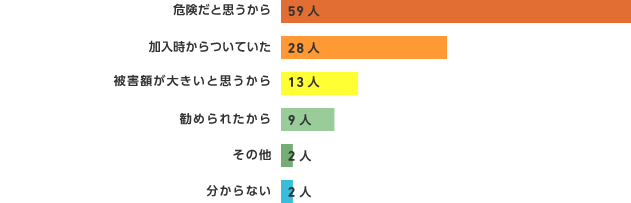 Q2.で「火災保険に水災の補償をつけている」と回答した93名に、その理由を聞いてみました。