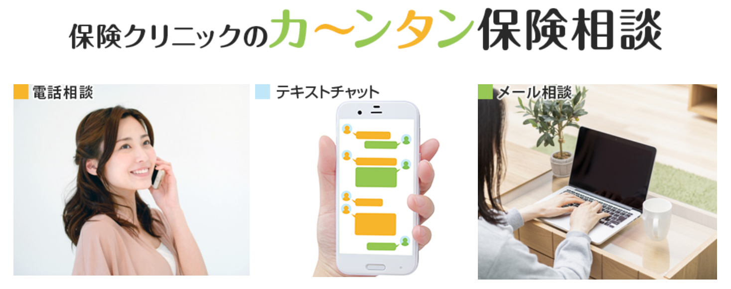 『保険クリニック』のコンサルタントと、電話・チャット・メールで保険のご相談ができるサービスです。