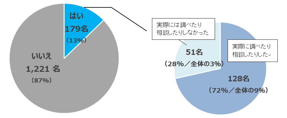 1,400名のうち、179名が保険の見直しや加入を検討したと回答し、そのうち128名が実際に保険を調べたり相談したりしたと回答しました。