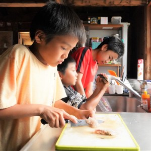 大晦日、毎年恒例のしめ縄づくりの様子です。夫が一生懸命しめ縄をつくる横で、子ども達がちょっかいを出して遊んでいました。