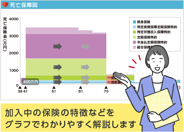 そのうえで、保障内容を見直した方がよい保険、新たに加入をした方がよい保険など、丁寧にアドバイスさせていただきます。