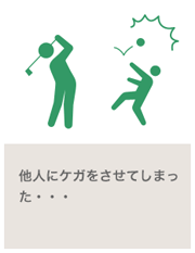 ゴルファー保険の代表的な補償についてみてみましょう。下記のようなゴルフ場や練習場で起こりうる様々な事故に強い味方です。