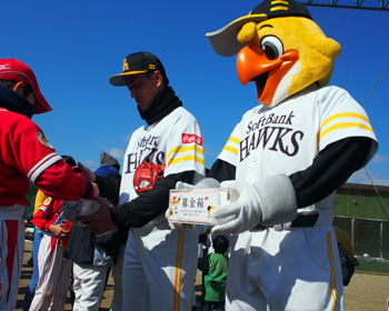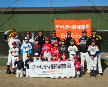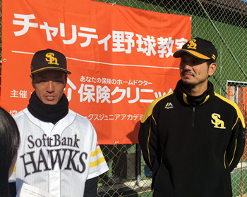 今年で3回目となるこの教室は、絶好の野球日和の中、福岡県を中心に86名の小学生と、講師として福岡ソフトバンクホークスOBの新垣渚さん、城所龍磨さん、高橋和幸さん、出口雄大さん、山本和範さん、若菜嘉晴さんの6名にご参加いただきました。