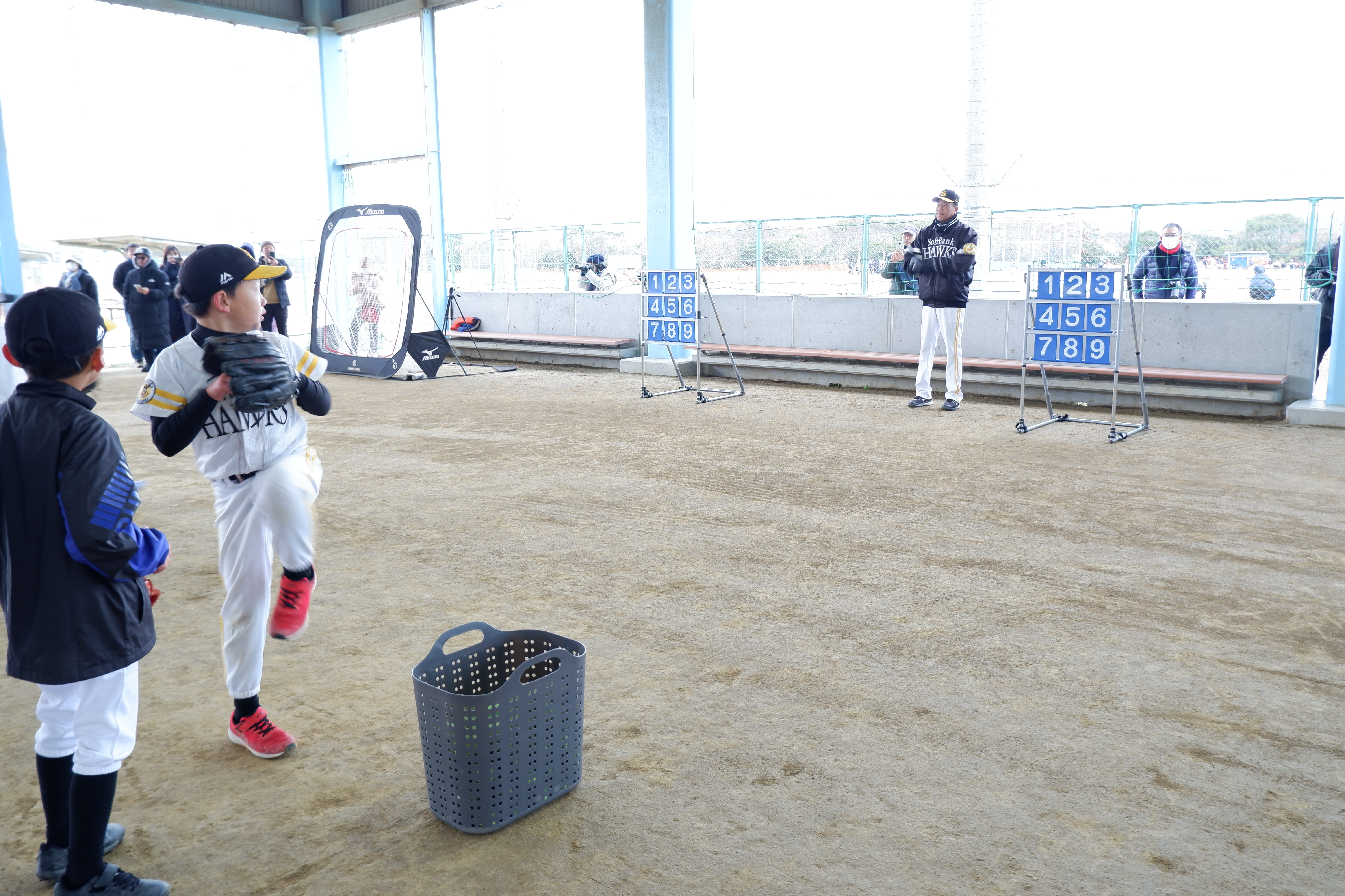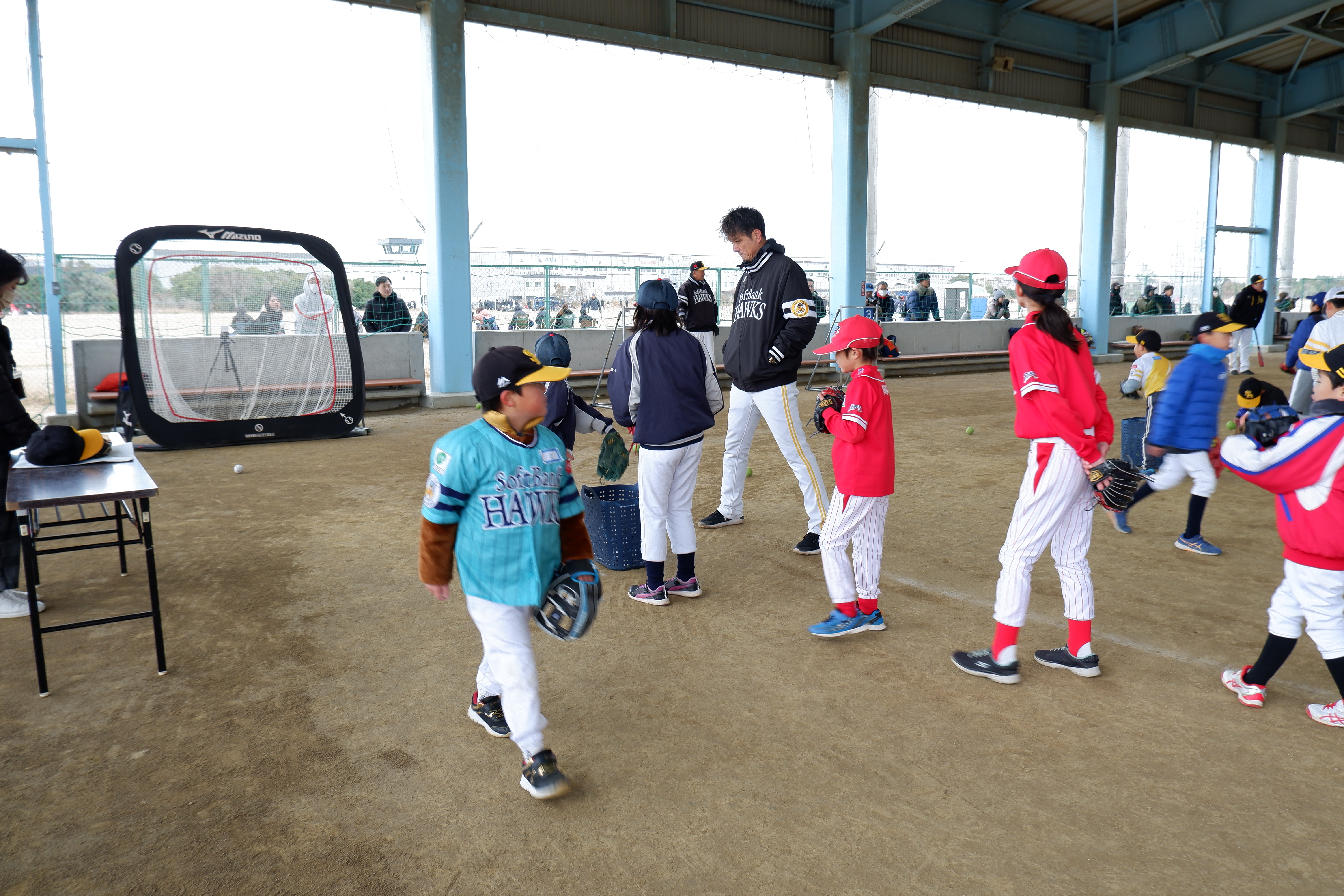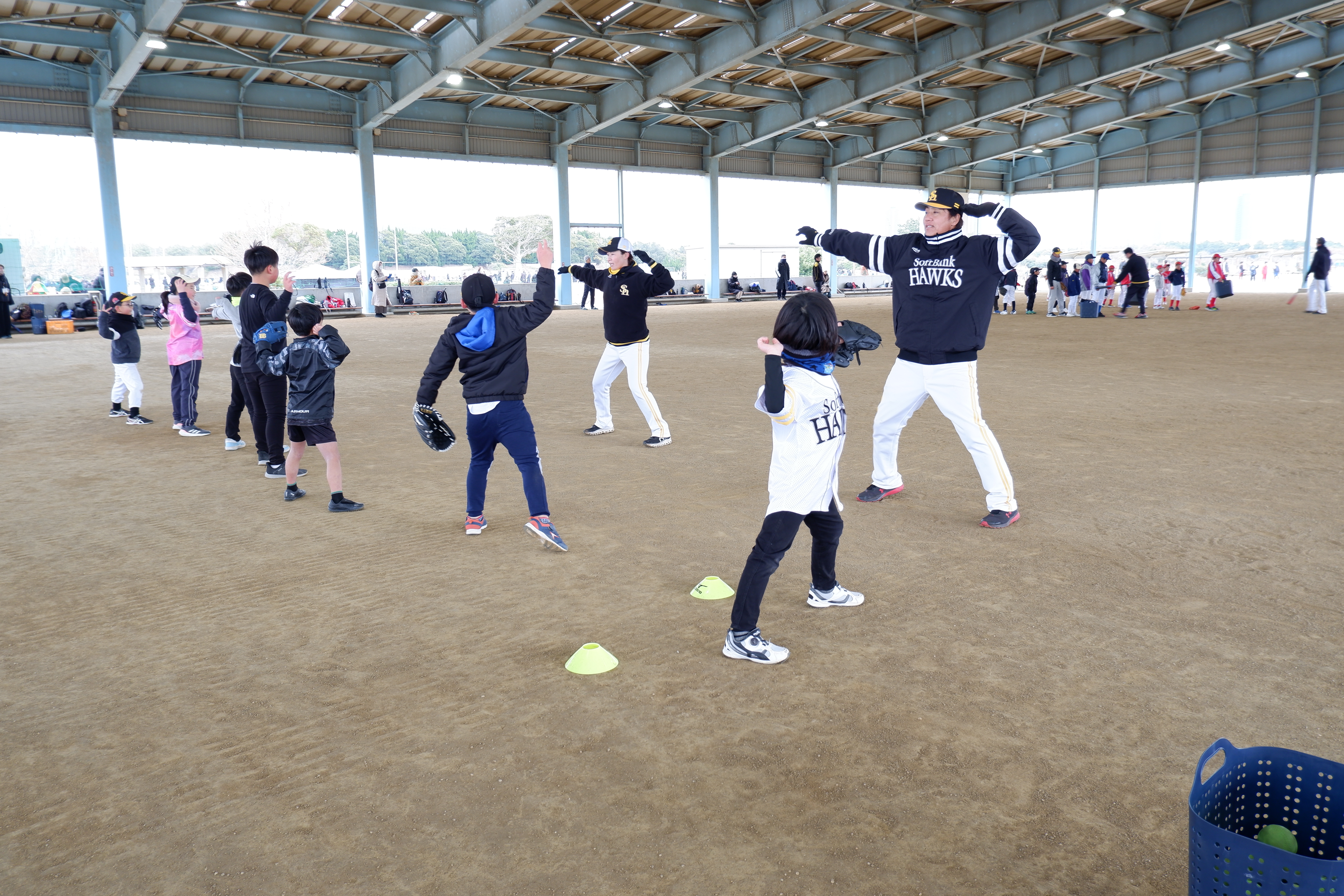 今年で8回目となった今回の野球教室では、63名の小学生と、ホークスジュニアアカデミーコーチの新垣渚さん、帆足和幸さん、矢野みなみさん、吉住晴斗さん、若菜 嘉晴さんの5名にご参加いただきました。