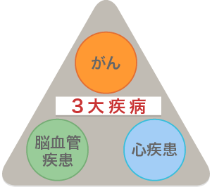 三大疾病は日本人の死亡原因の上位を占めるため、三大疾病のリスクに備えるために開発されたのが三大疾病保険になります。