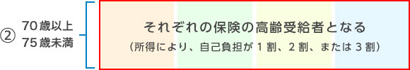 75歳未満の人はそれぞれの医療保険制度に属し、3割の自己負担金を支払っていますが、70歳以上は、「高齢受給者」となり、自己負担金は1割または2割に軽減されます。