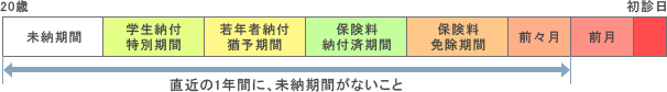 平成28年4月1日前に初診日がある障害については、初診日の前日において、初診日の属する月の前々月までの1年間に未納期間がないときは、要件を満たしたものとする