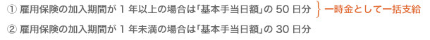通常の失業等給付は、28日ごとに失業の認定を受けてその28日分を受給しますが、高年齢求職者給付金は一括支給です。ご相談者は1年以上加入していますから、50日分を受給できますね。