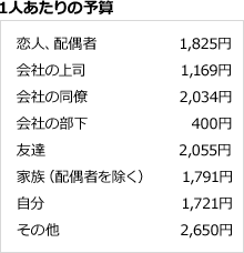 バレンタインで使用するプレゼントの総額を聞いたところ、平均は3,307円でした。一番多い金額は1,000円。意外にかける金額が低い事がわかりました。中ではバレンタインに25,000円をかける方もいました。