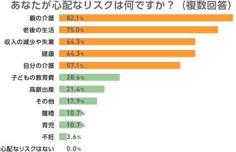 伊藤:親と同居していると、この先親が病気や介護状態になった時のことを考えちゃいませんか?私も自分の親と同居しているので、「親の介護」はとてもリスクに感じます。もし介護状態で動けなくなった時に、私が面倒を見ることになるのかな、と。そうなると、今のような働き方はできなくなるし・・・でも、子供も高校・大学で一番お金がかかる時期なので、数年の間は仕事を辞めるという選択は難しいです。一緒に住んでいるのに施設に入って?とも言いづらいです。病気を経験しているので今さら介護保険にも入れないですし。