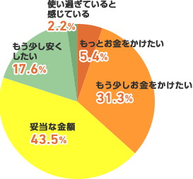 実際に美容にかけている金額について伺ったところ今より安くしたいと思っている人は19.8%だけで、36.7%は今より費用をかけたいと思っていることが分かりました。