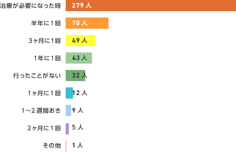 4月18日は「よい歯の日」。歯もその人の第一印象を決定づける、大切な場所です。そこで、どれ位の頻度で歯科に通っているか聞いてみました。約60%は治療が必要になった時だけ利用していますが、約38%は定期的に通っていることが分かりました。見た目だけでなく、健康のためにも歯は大切な場所。定期的に通って、歯の健康を維持することもお忘れなく・・・。