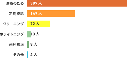 歯科に通っている理由を聞いたところ、第1位は当然ながら「治療のため」でした。