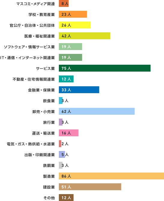 業種で多かったのは1位「官公庁・自治体・公共団体」6名、2位「製造業」4名、3位「建設業」「金融・保険業」3名となりました。