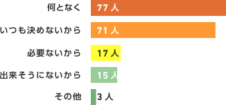 今年中にやりたい目標がなかった183名に理由を聞いたところ、1位は「何となく」、2位は「いつも決めないから」との結果になりました。