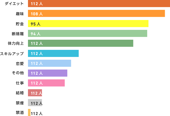 今年のやりたかった目標の1位は「ダイエット」、2位は「趣味」、3位は「貯金」でした。