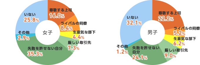 男子の1位は「いない」(104人)、2位は「失敗を許せない自分」(78人)